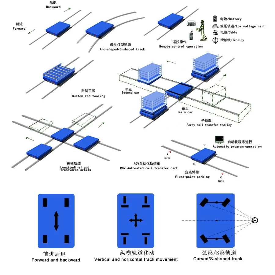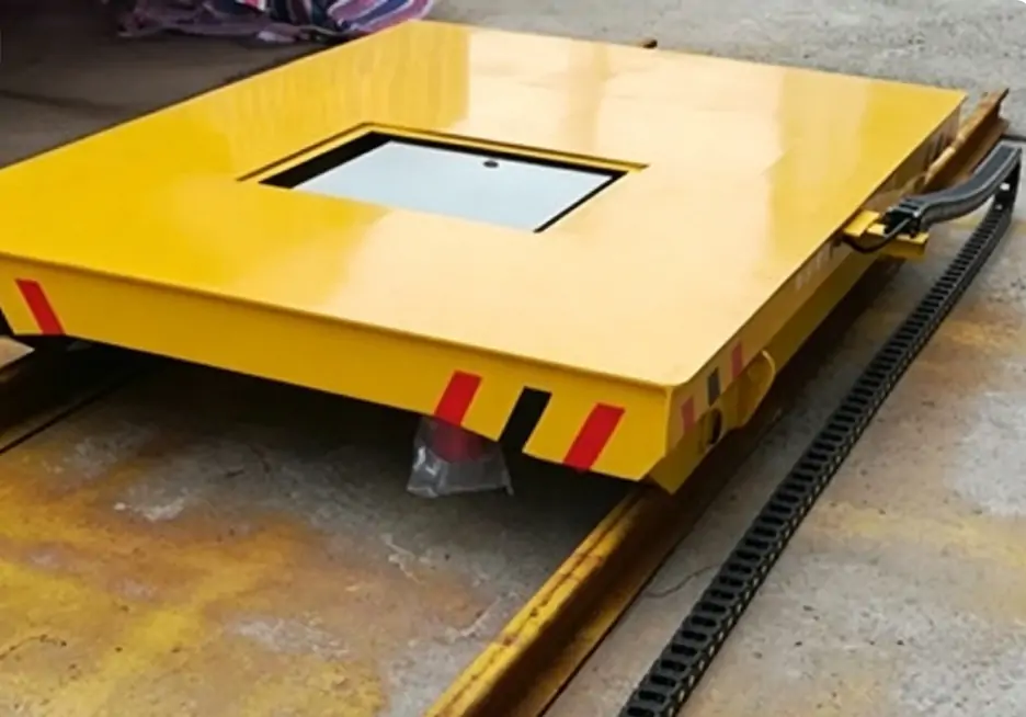 Drag Chain Type: This cable-powered transfer cart places the cable inside a “tank chain.” The drag chain prevents cable wear, making it perfect for shorter runs (usually within 20 meters) and clean-room environments.